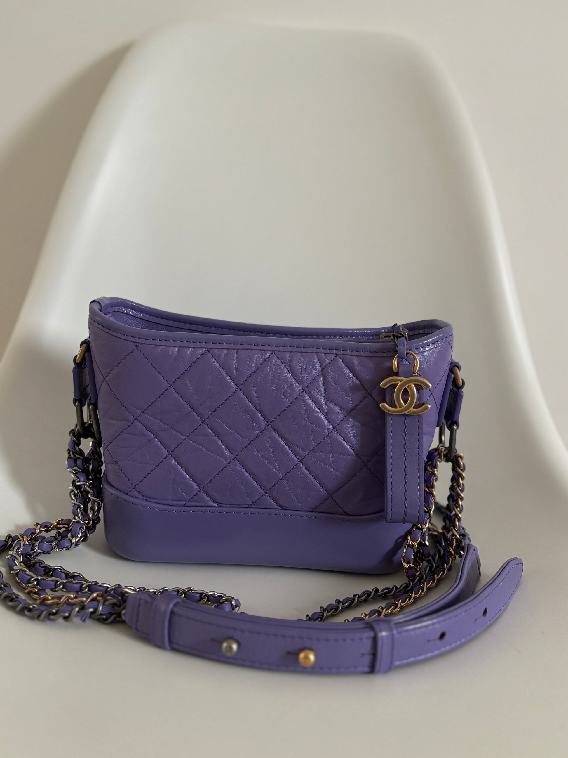Chanel Purple Small Gabrielle Quilted Leather Hobo Bag